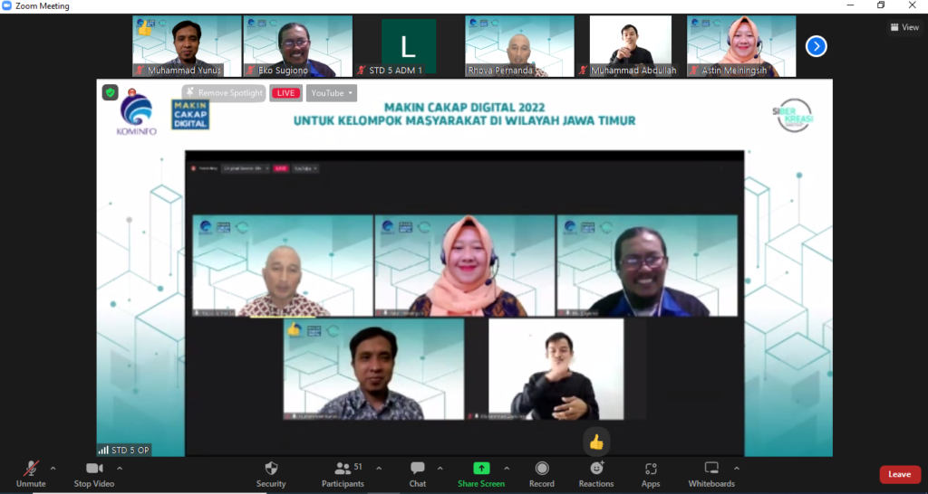Dilaksanakan pada 11 Agustus 2022. Pilar yang dibawakan yaitu Cakap Bermedia Digital dengan tema “Aman dan Produktif di Ruang Digital”. Adapun materi yang dibawakan yaitu Pilar Digital Skills dengan sub topik “Sukses Belajar Online dengan Literasi Digital”.